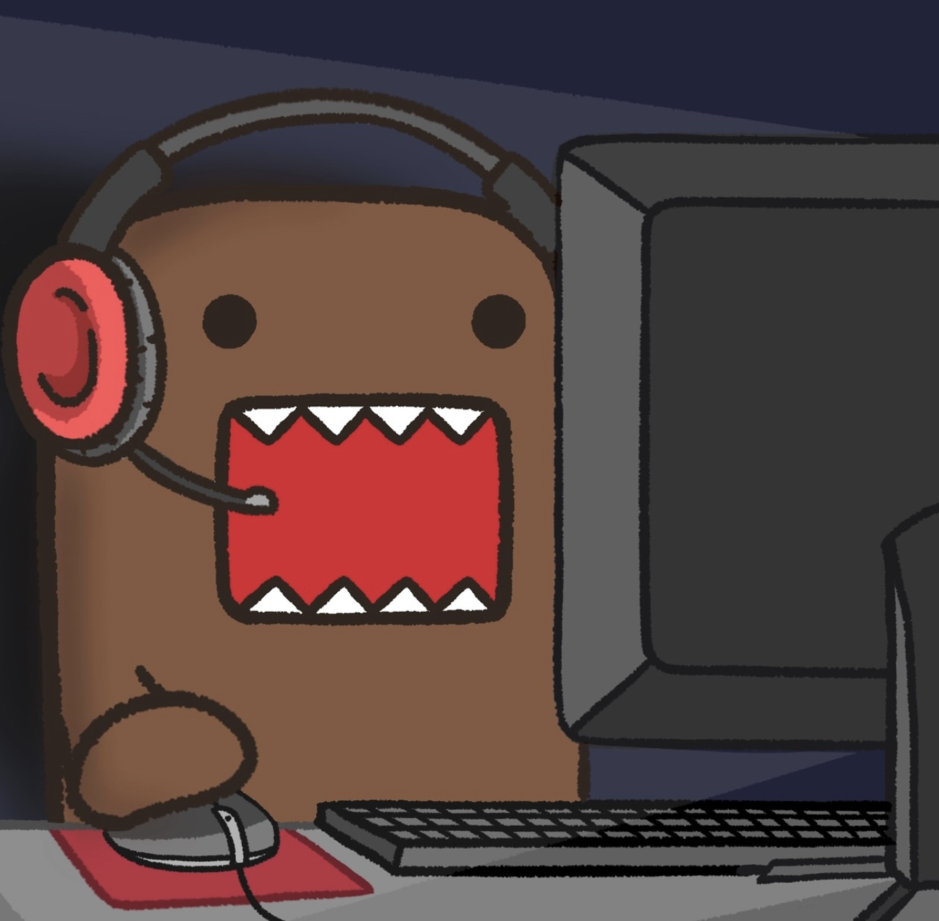At night, Domo becomes a full-time degen gamer, headset on, yelling “WAGMI” while farming liquidity like it’s XP. Rage quits are for paper hands only.